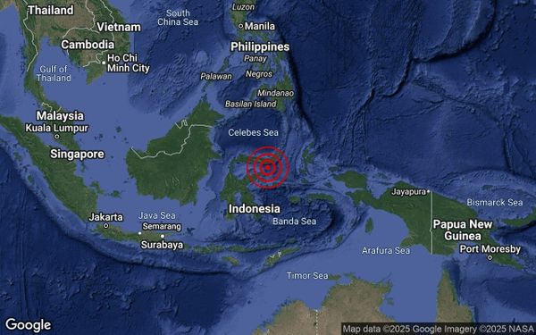 马来西亚气象局今早在脸书贴文指出,震中位于南纬0.1度,东经123.8度,即距离印尼哥伦打洛东南方约103公里处,震源深度为79公里。