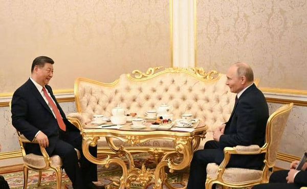 习近平与普汀8日(当地时间)在克里姆林宫总统办公室进行茶叙,在会上发表简短声明。