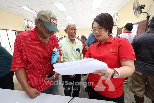 武吉兰樟居民于2025年5月11日在帝沙再也花园民众会堂举行的说明会上,了解旧水管更换工程的详情。(摄影:NUR ADIBAH AHMAD IZAM/MEDIASELANGOR)[/caption]