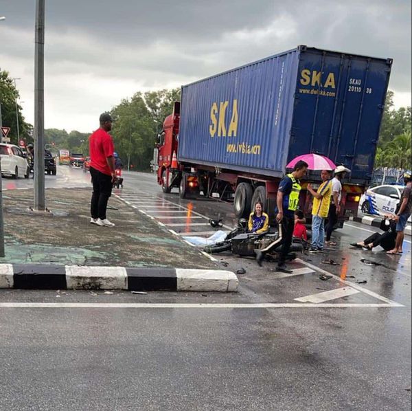 (加央18日讯)拖格罗里在桥梁下拐弯时撞上一对共骑摩托车的母子,医护人员证实泰国籍妇女当场身亡,儿子受轻伤。
