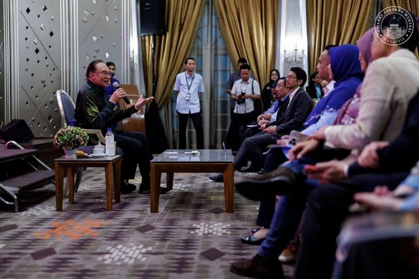 安华在汇报会也与媒体工作者就时事和全球课题展开交流。