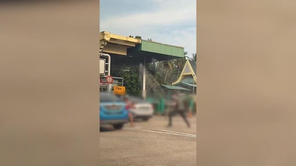 根据长达28秒的视频,画面显示两名男子当时在收费站争吵,其中一人仅身穿沙龙并戴帽子并试图持械攻击,后来被在场的另一位民众劝阻。