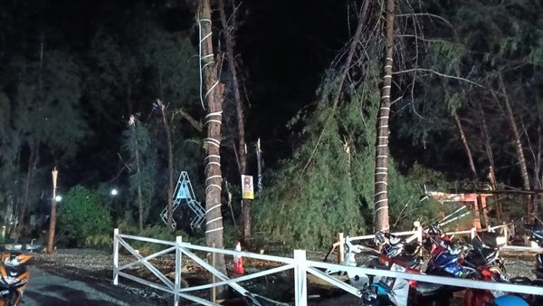稍早前,克马新海滩的雷雨也导致多棵大树倒塌,一些游客的车辆来不及移走而被压毁。