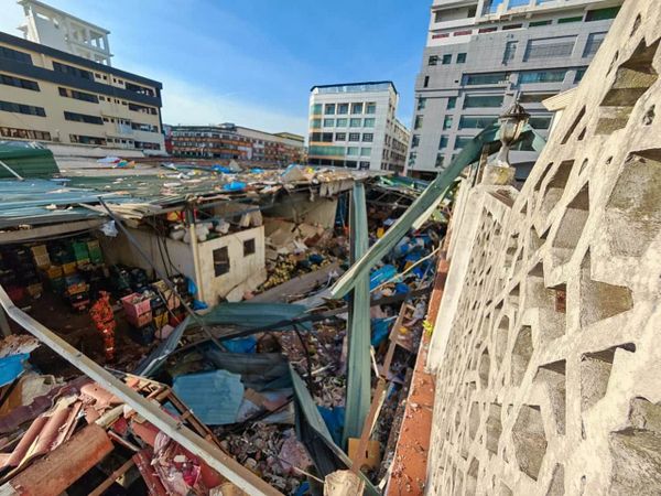 爆炸造成该水果店面积30x30平方局的办公室墙面倒塌,以及停放在清真寺旁6辆交通也受影响。
