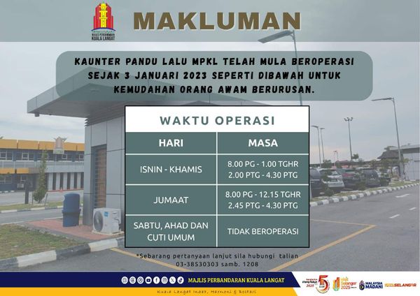 瓜拉冷岳市议会官方脸书告知,这项服务从2023年1月3日开始,让民众可通过车窗,处理一些事务。