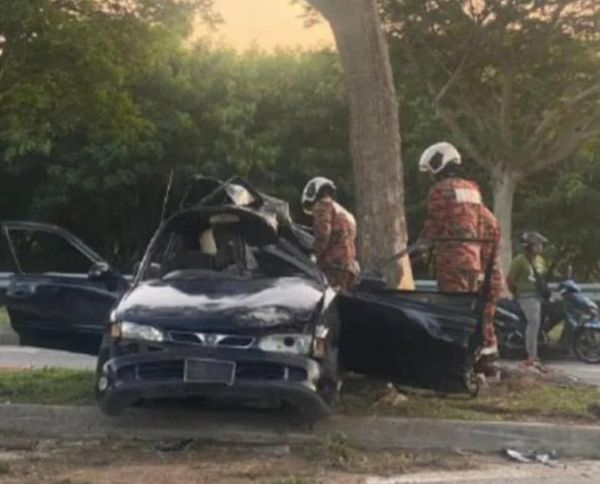 (马六甲22日讯)两名友人今早驾车途经吉邦海岸路时,失控撞向放分界堤处的大树,共赴黄泉!