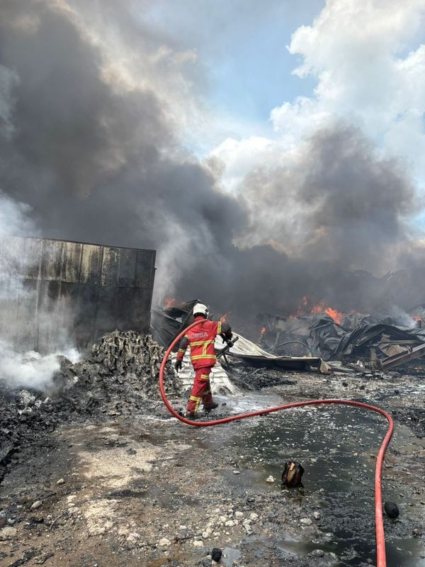 行动指挥官哈斯旺表示,现场因为有易燃材料而导致火灾迅速蔓延,其中纸巾、塑料和餐具等物品都存放在工厂的6个仓库中。