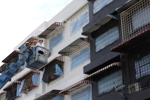武吉兰樟区州议员潘佩玲今早与士拉央市议员余深恩巡视工程进展时指出,该住宅区共有5栋组屋,至今已有30年历史,期间未曾进行大型翻新,导致外观油漆脱落、整体环境显得老旧。