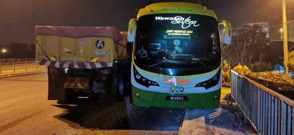 他说,车祸涉及一辆载沙罗里和没有载送乘客的旅游巴士,37岁的巫裔罗里司机在消拯员赶抵现场前,已自行跳下罗里,且没有受伤。