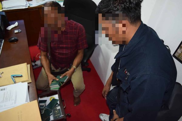 “移民局也当场起获130本孟加拉护照、3本印尼护照和3部手机。”