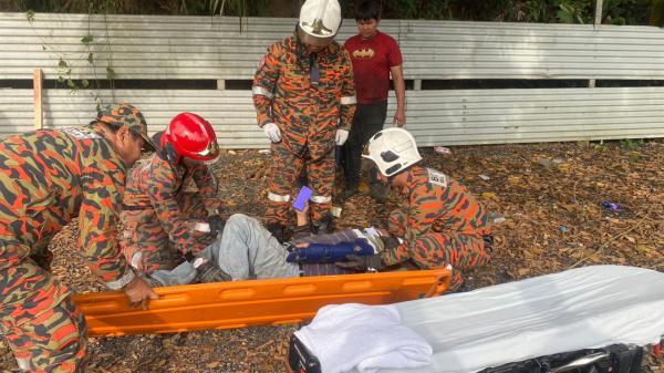 (莎阿南17日讯)载满木材的罗里冲进10米山沟,华裔男司机左手臂骨折送院!