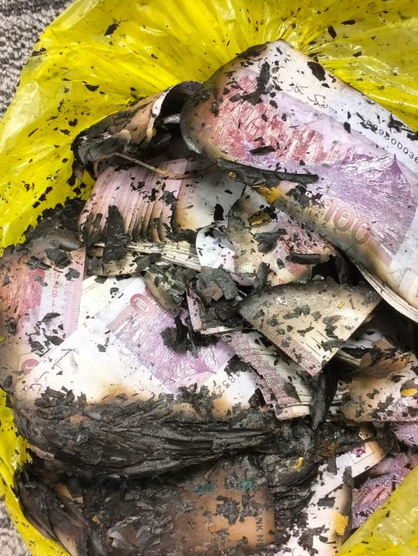 报道指出,反贪会上周四突击嫌犯位于八打灵再也的住所,发现总额接近100万令吉的钞票遭焚烧。