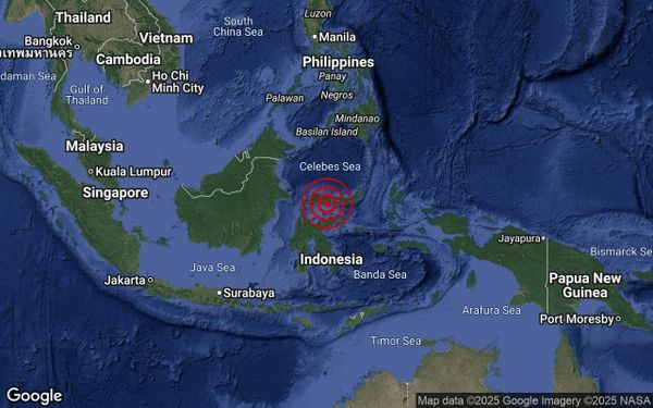 马来西亚气象局今日凌晨在脸书贴文指出,震中位于北纬0.4度,东经122.0度,即距离哥伦打洛省的以西120公里处。