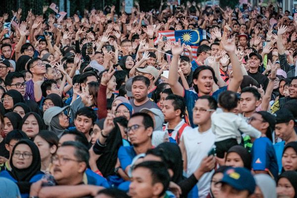 国庆欢乐在充满国民精神和体育精神的氛围中进行,大多数参与者沿着麻坡(又名香妃城)标志性路线跑步和散步时挥舞着辉煌条纹。