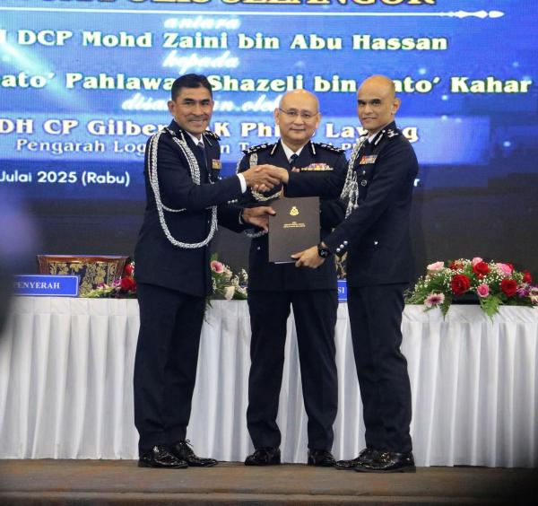 雪州代总警长莫哈末扎尼今日在雪州警察总部出席移交职权仪式,将职位移交给沙哲里,武吉安曼后勤及工艺部总监吉尔伯德菲利普拉扬则亲自见证。