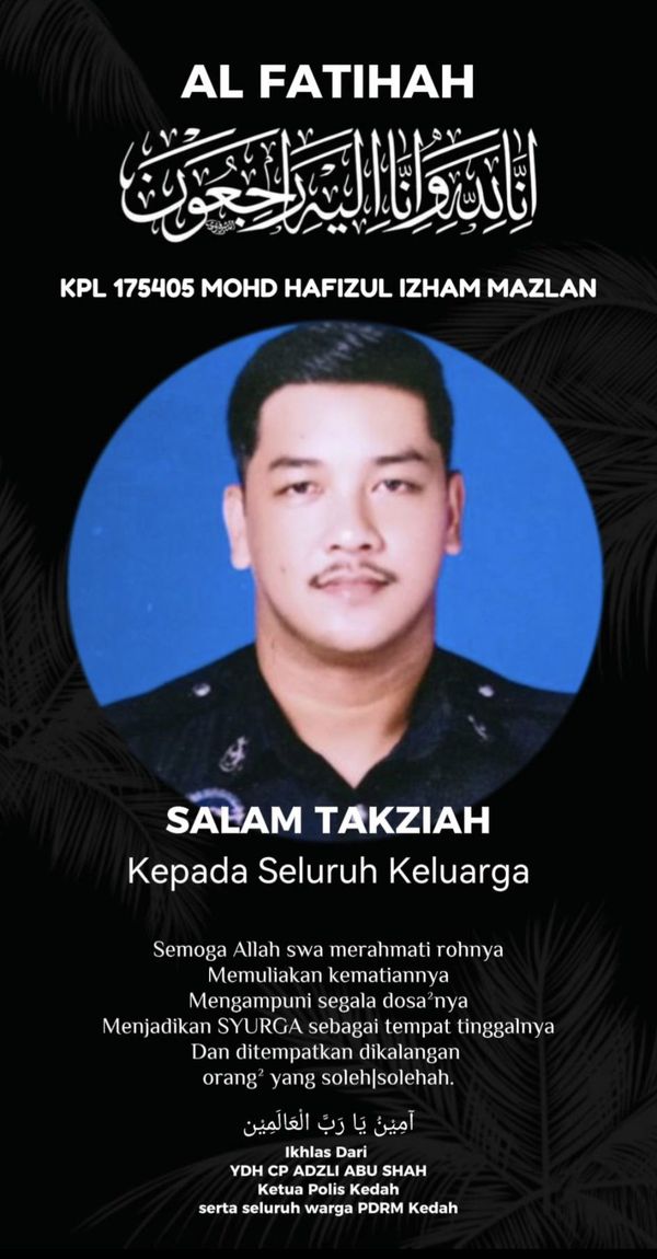 阿兹里表示,已故的莫哈末哈菲祖的遗体仍在亚罗士打苏丹娜巴希雅医院法医部尸检,原籍登嘉楼州士兆的他已服务15年。
