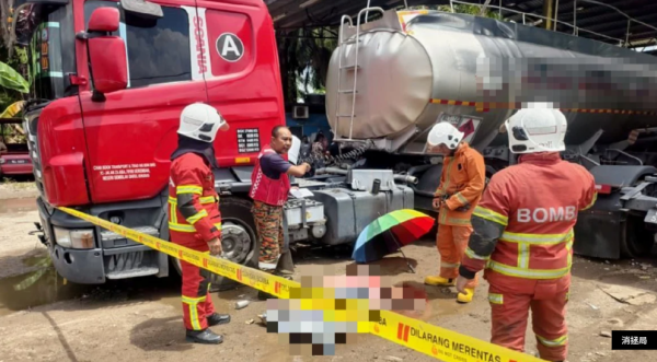 (芙蓉16日讯)油槽车在修车厂内进行焊接作业时突然爆炸,导致在车上的罗里司机当场惨死,一名修车厂助手则受轻伤。