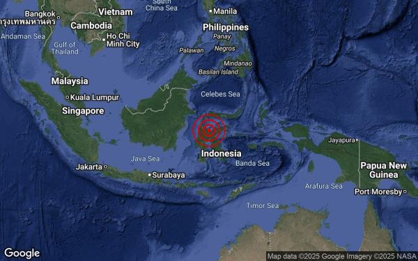 马来西亚气象局于今日上午在脸书贴文指出,震中位于南纬1.3度,东经120.8度,即距离印尼亚帕卢东南107公里处。