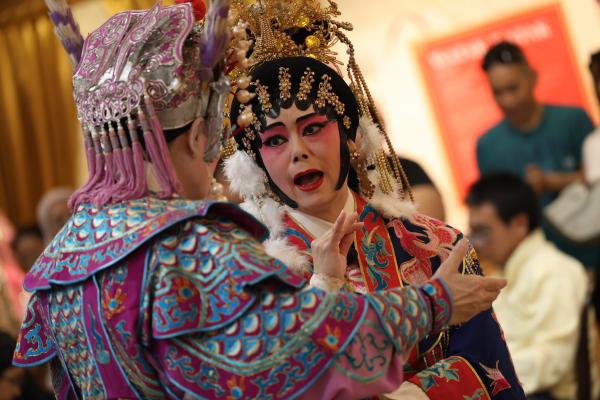 在国家博物馆展出的粤剧展,华丽戏服、古老乐器和舞台表演,一步一景,带民众穿越百年,沉浸在粤剧的独特魅力里。(摄影:NUR ADIBAH AHMAD IZAM/MEDIA SELANGOR)
