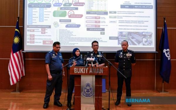 (吉隆坡30日讯)警方于本周二至三在全国11个州属展开“升级版违禁品行动”(Op Kontraban Mega),成功起获1321万8373令吉证物,并逮捕195名嫌犯助查。