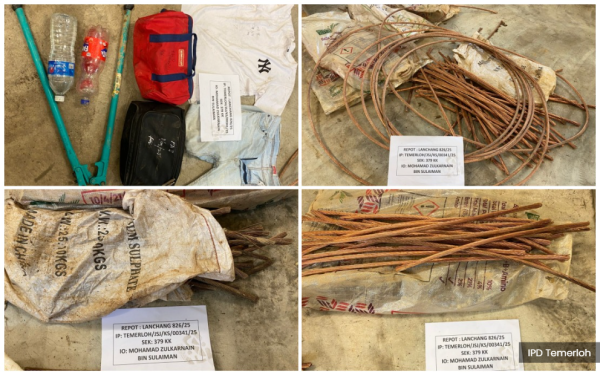 (关丹12日讯)警方本周三在淡马鲁的突袭行动逮捕2名男子,并缴获疑似从东海岸铁路(ECRL)工程中盗窃的各种设备和铜电缆。