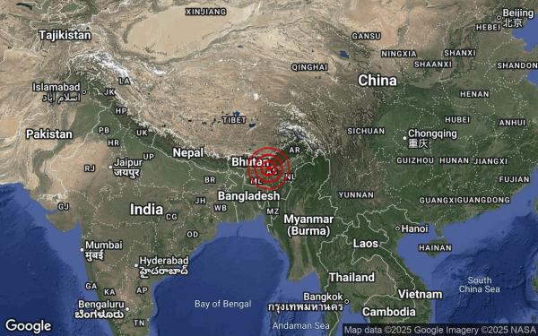 马来西亚气象局今日晚上在脸书贴文指出,震中位于北纬26.8度,东经92.3度,即距离孟加拉贾马尔普尔的第322公里处。