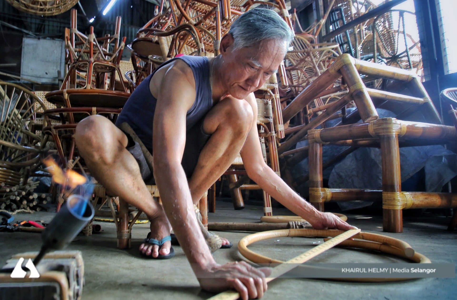 然而,随着藤原料骤减、采摘人口大幅下降,如今无论是藤制品还是制藤师傅,都已“买少见少”。坐落在吉隆坡旧巴生路的云腾家私企业,正是少数仍坚持传承藤艺的老匠人之一。