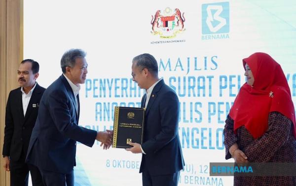 马新社监管理事会主席与成员的任命,已获得国家元首苏丹依布拉欣陛下御准,通讯部长拿督法米今日在马新社总部举行的仪式上颁发委任状。