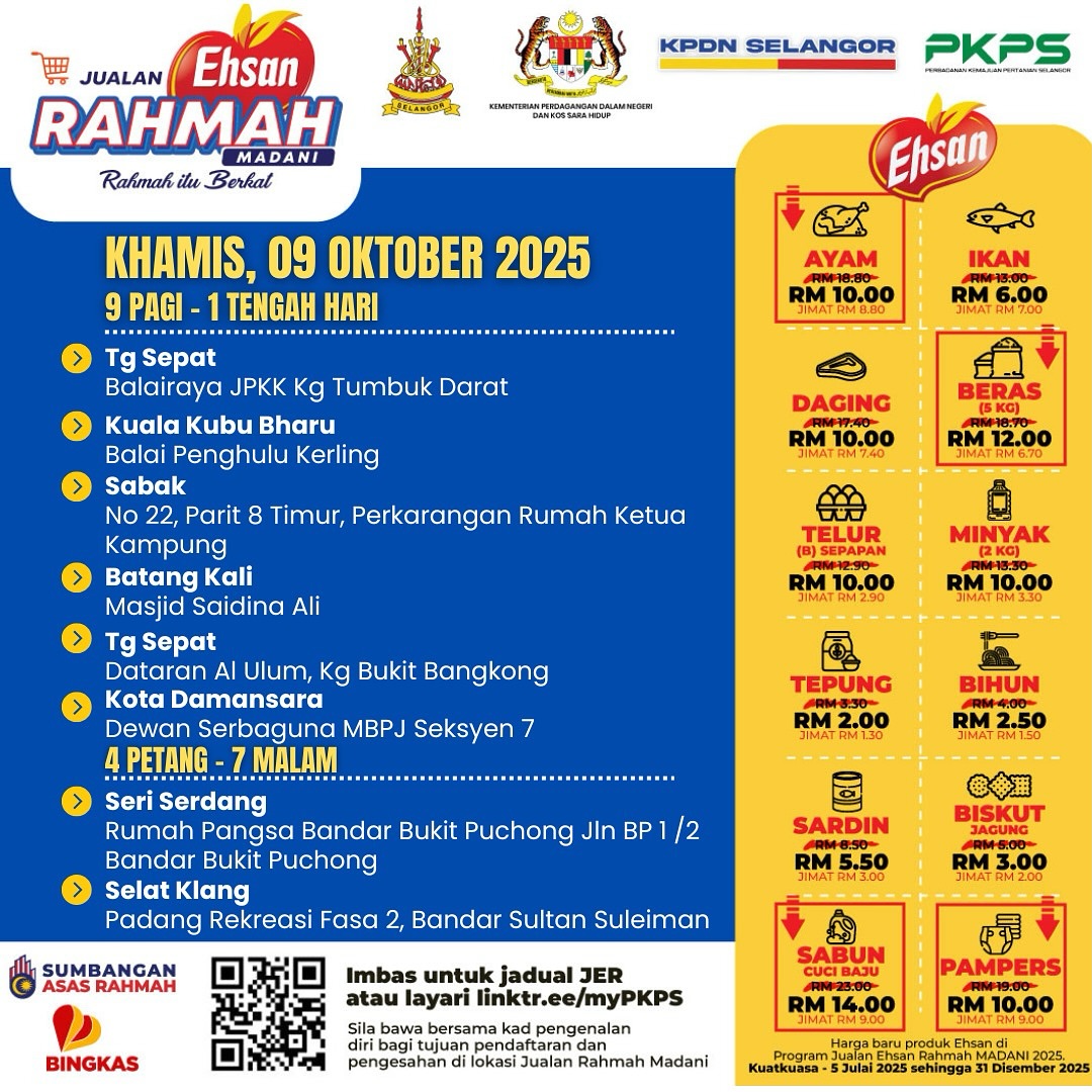雪州农业发展机构(PKPS)在脸书贴文表示,市集将于上午9时至下午1时,以及下午4时至晚上7时开卖。