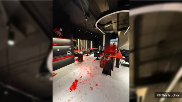 “事件导致店内家具被红漆破坏,一名正在理发的顾客也遭殃,店方估计损失约1万5000令吉。”