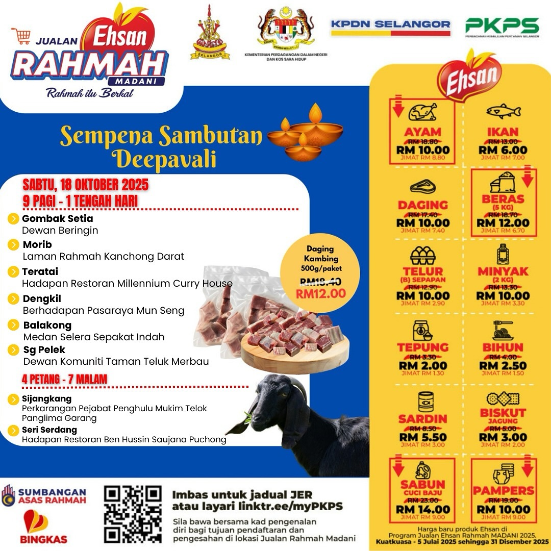 (莎阿南15日讯)益山慈悯市集本周日将在雪兰莪州16个地点大促销,并配合屠妖节,特增设羊肉,一包500克只售12令吉。