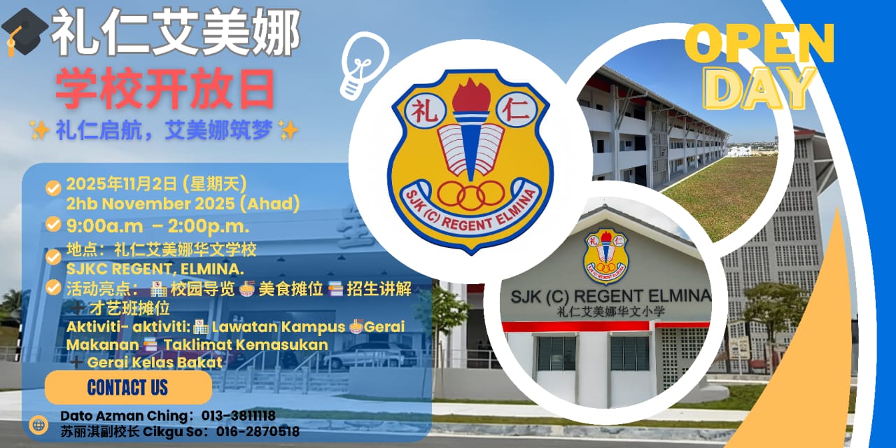 礼仁艾美娜华小副校长苏丽淇接受《雪兰莪媒体》访问时指出,来临11月2日上午9时至下午2时是学校的首个开放日,雪州地方政府、旅游及新村行政议员拿督黄瑞林届时将莅临参观。