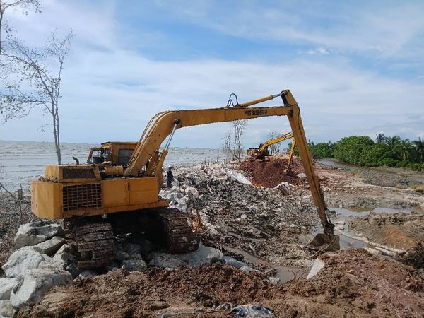 适耕庄区州议员拿督黄瑞林指出,当局已展开紧急修复工程,使用防波石加固堤坝,并安装两台抽水机以排出积水。