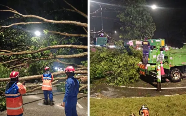(莎阿南8日讯)周五晚的一场暴风雨导致关丹多地,多达60栋房屋受损,至少13棵大树被连根拔起倒下!