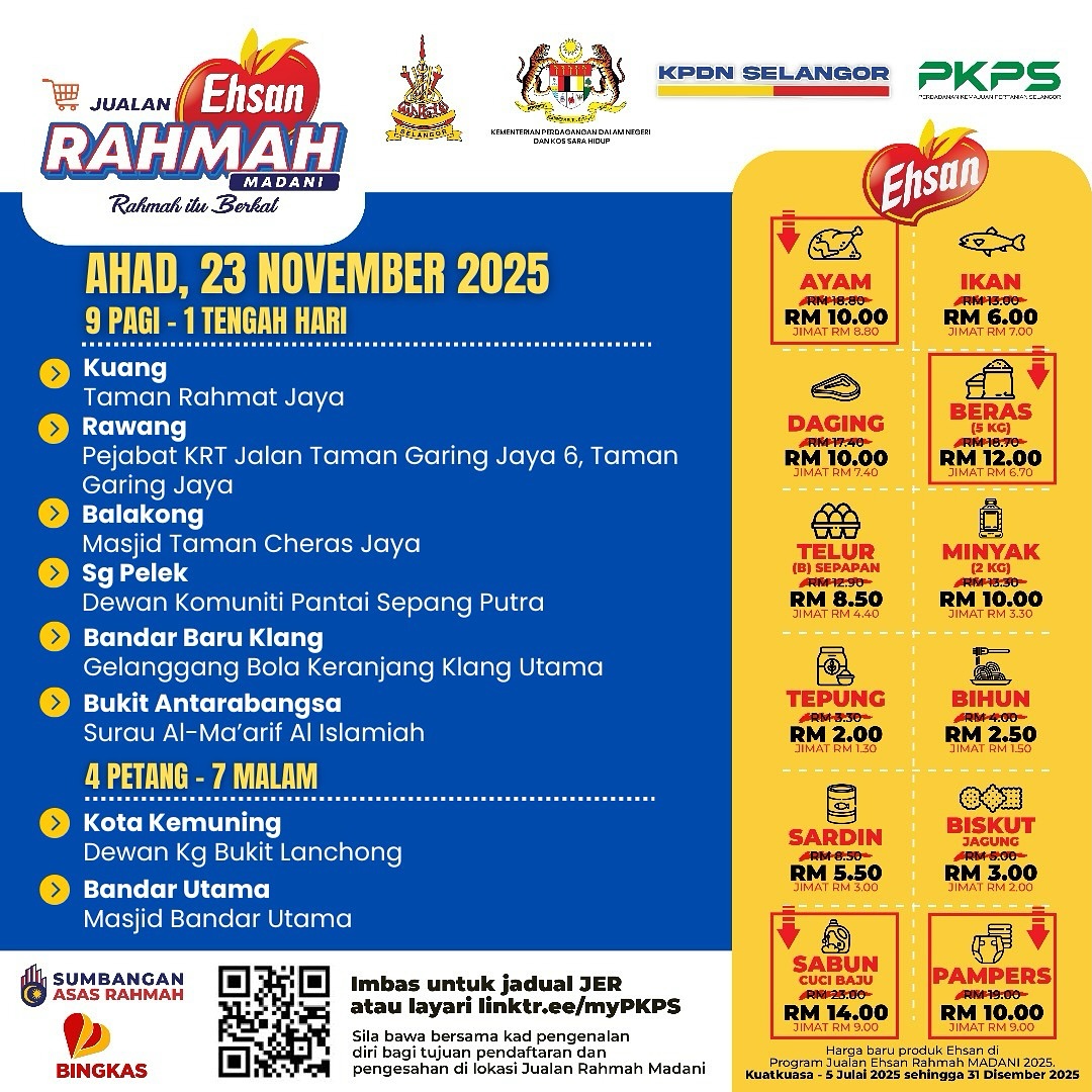 由雪州政府推出的“雪州人民市集”,如今与雪州国内贸易和生活成本局合作,易名为益山慈悯市集(Jualan Ehsan Rahmah)。
