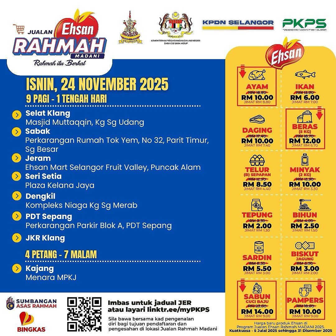 由雪州政府推出的“雪州人民市集”,如今与雪州国内贸易和生活成本局合作,易名为益山慈悯市集(Jualan Ehsan Rahmah)。