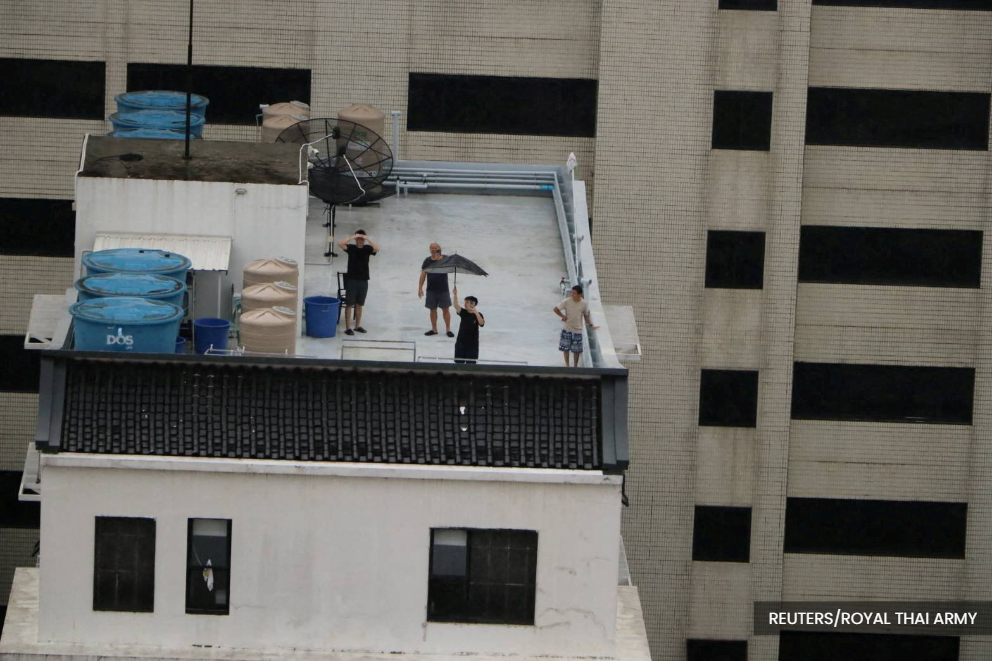 泰国皇家海军表示,军用直升机也向医院运送发电机,并在社交媒体分享了在阴天下,设备被运送到屋顶的照片。