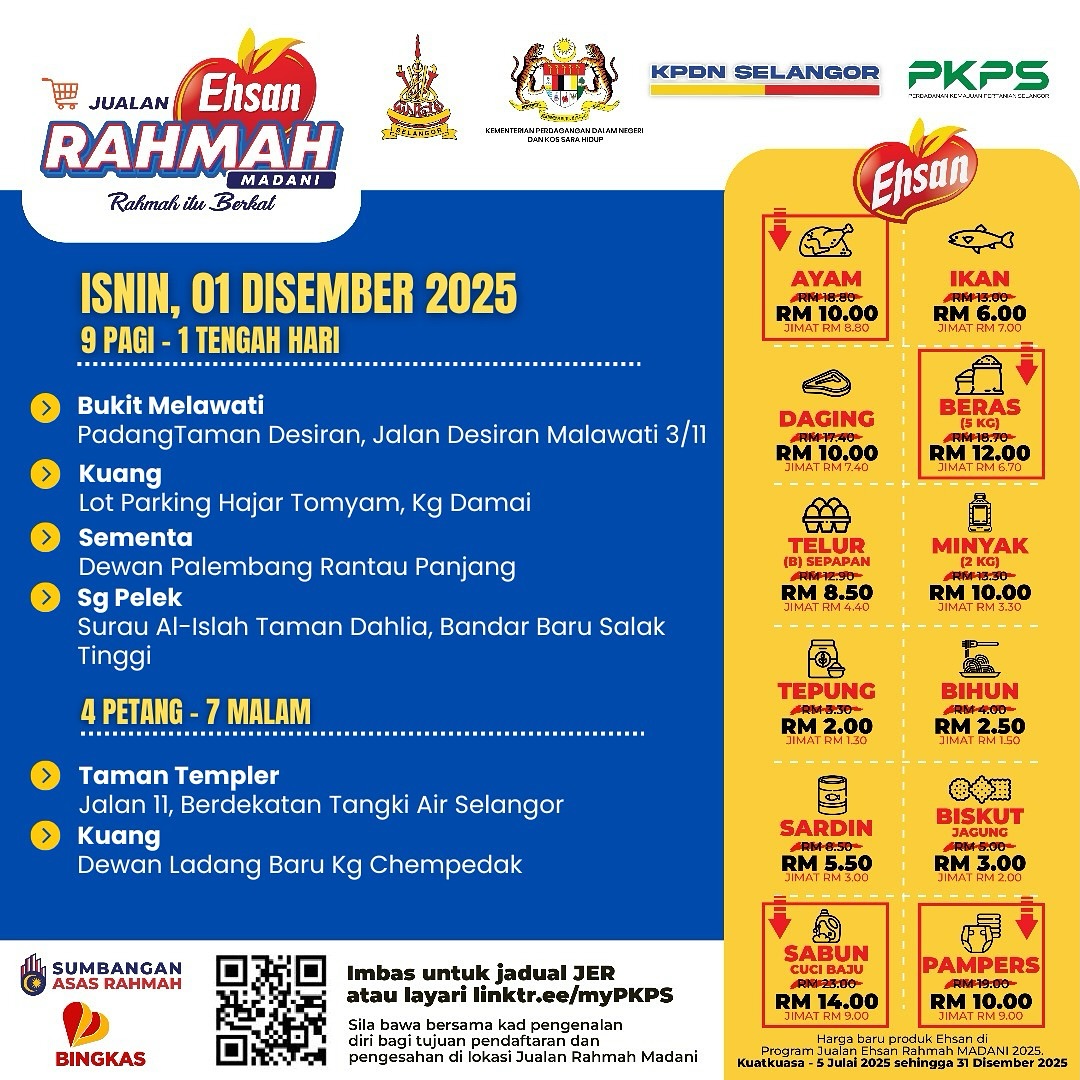 由雪州政府推出的“雪州人民市集”,如今与雪州国内贸易和生活成本局合作,易名为益山慈悯市集(Jualan Ehsan Rahmah)。