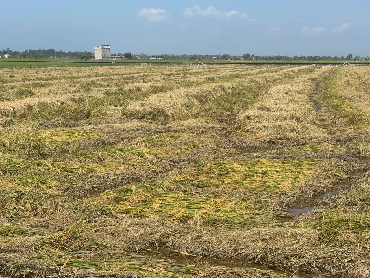 (莎阿南1日讯)适耕庄及周边地区上周遭狂风暴雨袭击,导致原定近期收割的134份稻田几乎全数受毁,超过70%至90%的成熟稻谷被吹倒,稻农血本无归!