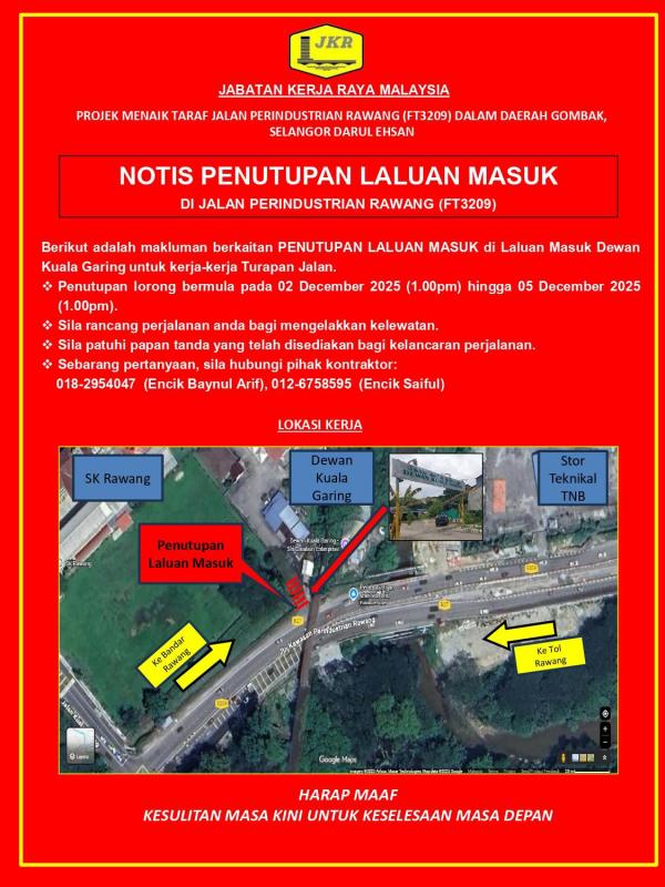 万挠区州议员蔡伟杰今日透过脸书发文指出,上述路段从今日下午1时起关闭,至本周五下午1时。