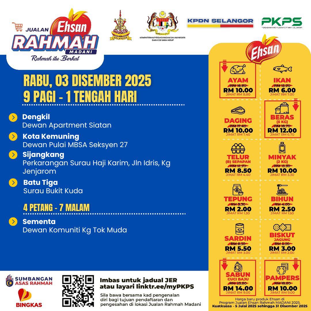 由雪州政府推出的“雪州人民市集”,如今与雪州国内贸易和生活成本局合作,易名为益山慈悯市集(Jualan Ehsan Rahmah)。