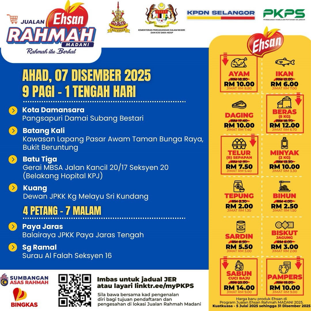 由雪州政府推出的“雪州人民市集”,如今与雪州国内贸易和生活成本局合作,易名为益山慈悯市集(Jualan Ehsan Rahmah)。
