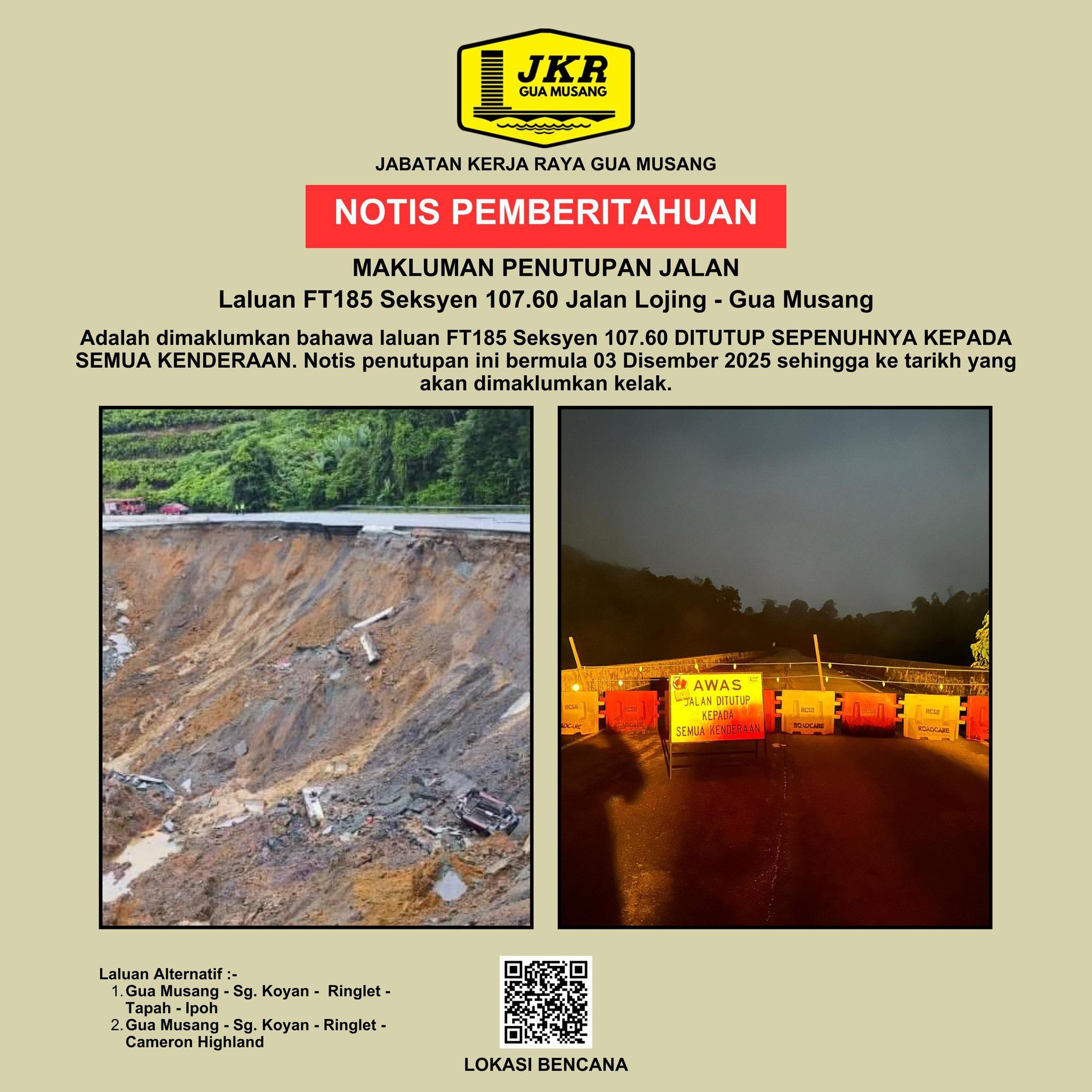 “我们希望所有道路使用者,包括摩托车骑士,不要冒险穿越土崩区。目前,已有两名摩托车骑士因违反道路封闭令而被开罚单。”