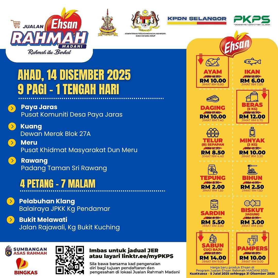 由雪州政府推出的“雪州人民市集”,如今与雪州国内贸易和生活成本局合作,易名为益山慈悯市集(Jualan Ehsan Rahmah)。