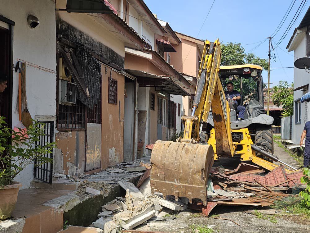 由于部分民宅没有遵守条规扩建,包括其中一间民宅在未经批准下,擅自在屋后的沟渠上方非法扩充建筑结构,因此加影市议会(MPKj)于12月9日前往士毛月宁津城(Bandar Rinching)第6区执法。