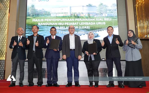 依兹汉今日在吉隆坡成功时代广场酒店,见证 雪州水务管理局与 Landasan Lumayan 私人有限公司(LLSB)及成功置地私人有限公司,签署总部大厦买卖协议仪式。