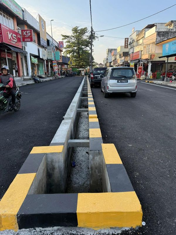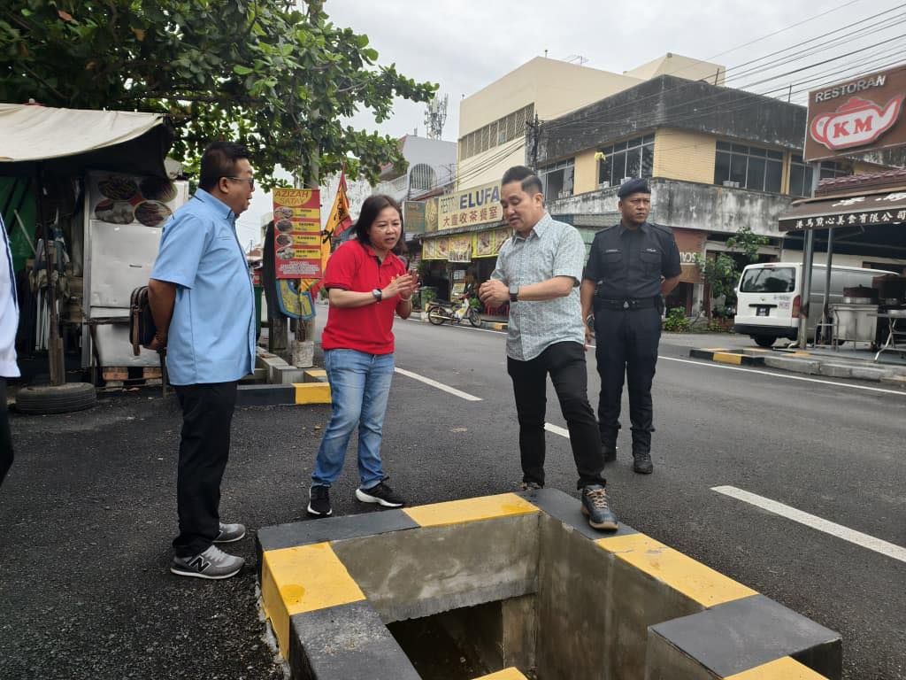 “提升工程包括重铺200公尺长的公共路(jalan public)、重建并加宽新村主要道路左右两旁的各200公尺U型排水系统、为双溪毛糯华小C出口的排水沟增加铁盖,以及在排水沟边缘增设黄黑亮色的标识。”