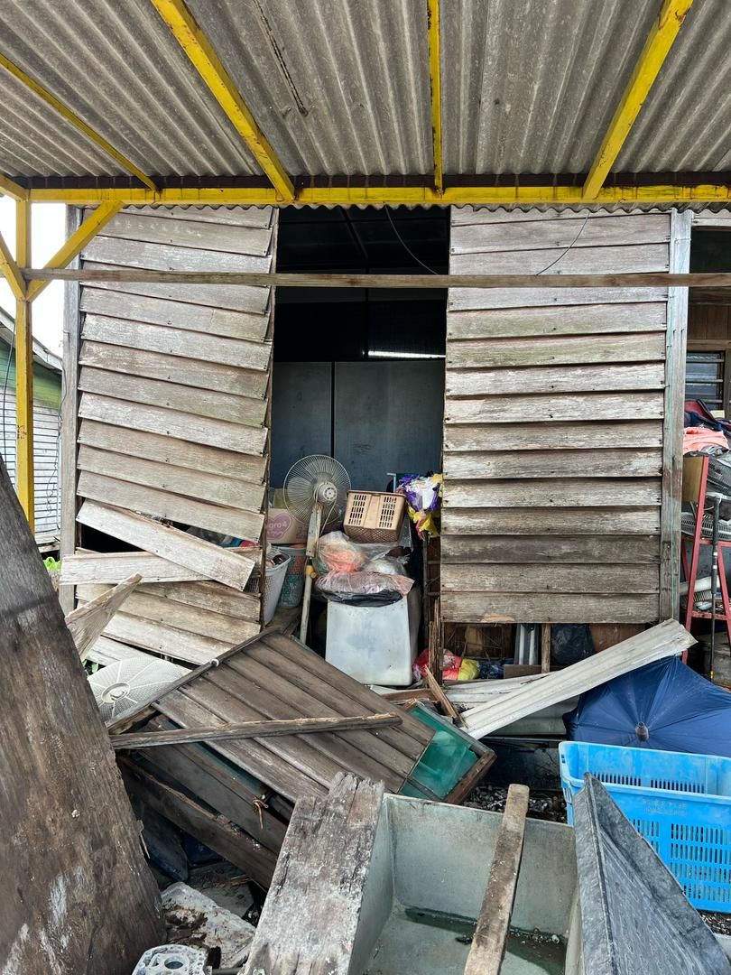 住在适耕庄海口渔村的村民王旭明(51岁),原本定居的木屋已年久失修,“摇摇欲坠”沦为危楼,其母亲也曾因踩空木板而受伤流血。