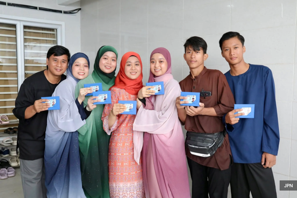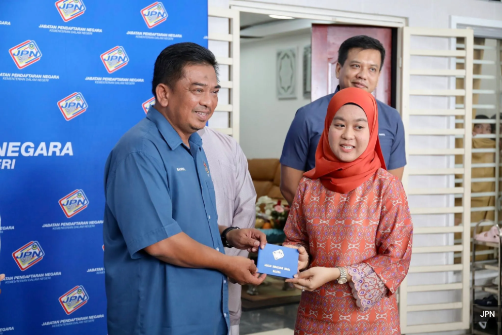(万挠2日讯)未持有身分证明文件的七兄弟姐妹在经过多年的等待后,今日终于在他们位于双溪布亚镇(Bandar Sungai Buaya)的住家,领取通过逾期登记方式办理的身分证。