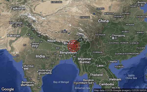 马来西亚气象局今早在脸书贴文指出,震中位于北纬26.4度,东经92.3度,距离孟加拉杰马勒布尔东北方向第294公里处。